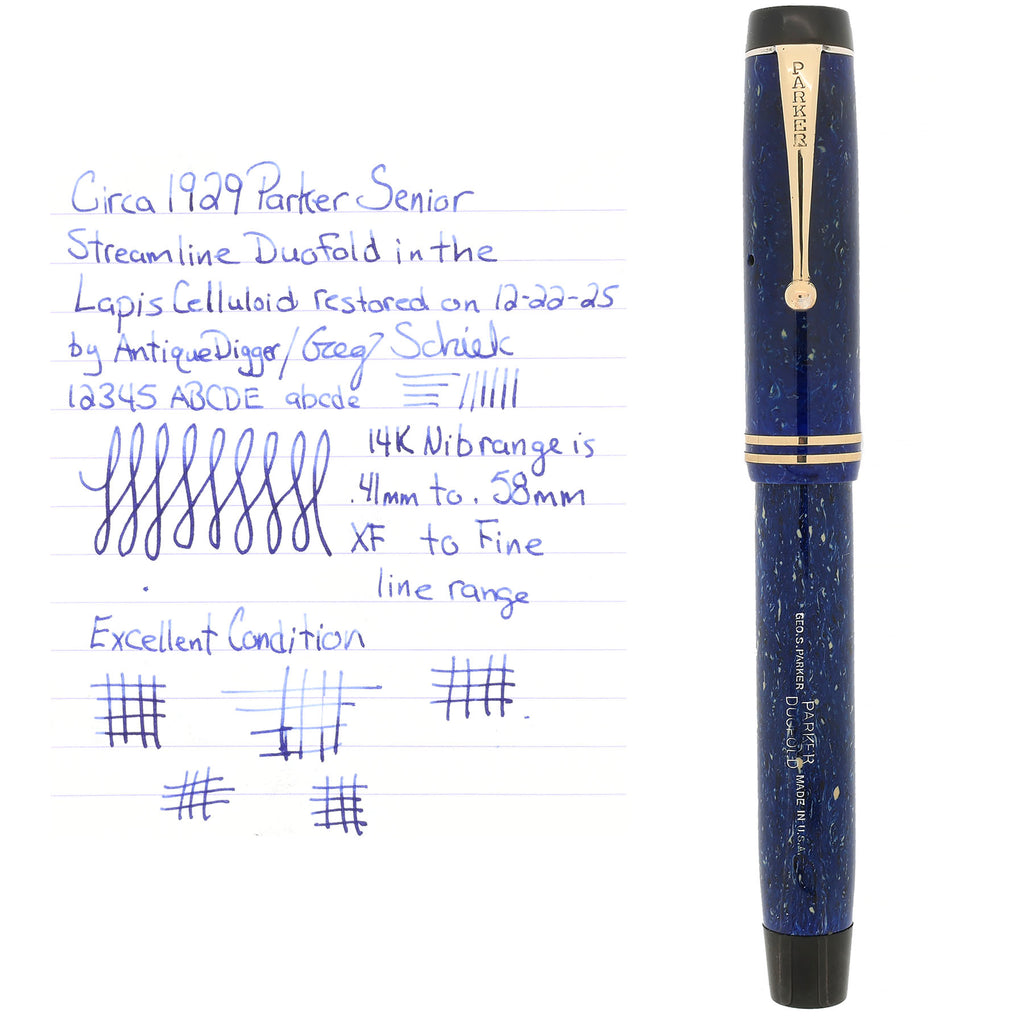 CIRCA 1929 SENIOR DUOFOLD STREAMLINE LAPIS BLUE FOUNTAIN PEN RESTORED