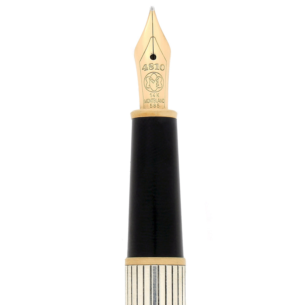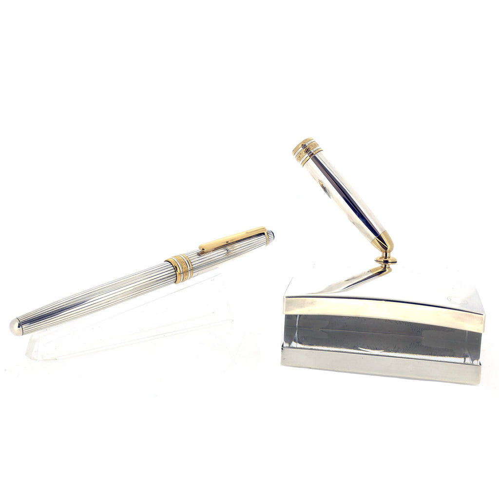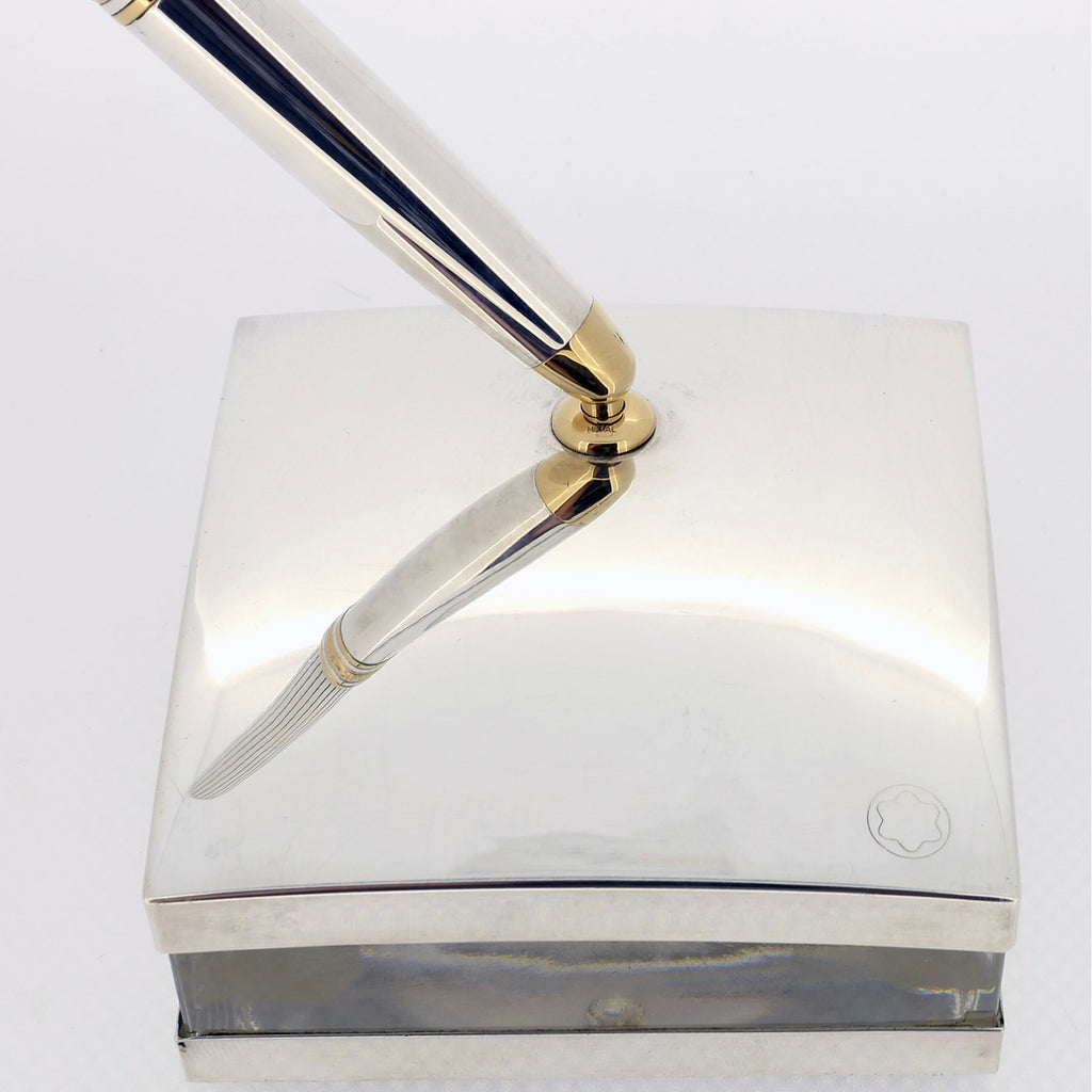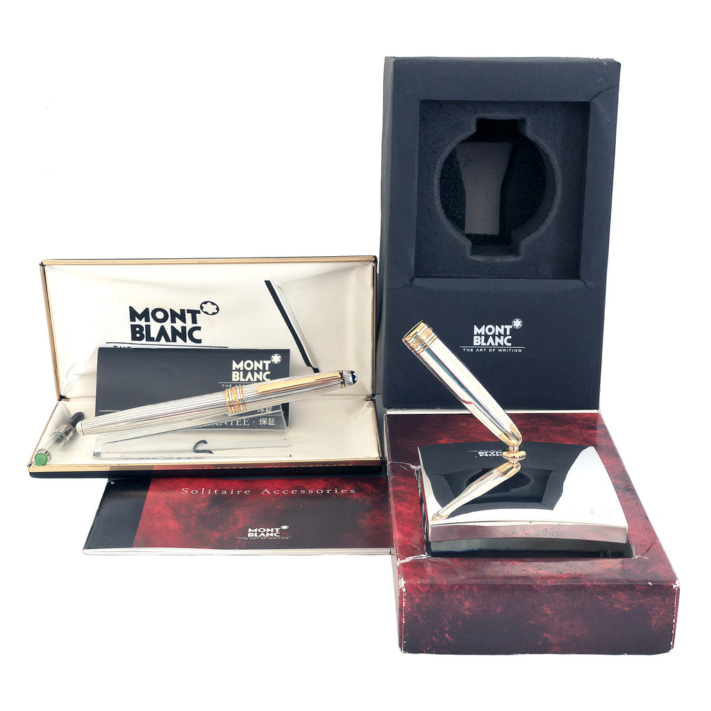 C1999 MONTBLANC MEISTERSTUCK N°144 SOLITAIRE STERLING LINED PATTERN FOUNTAIN PEN W/STERLING DESKBASE