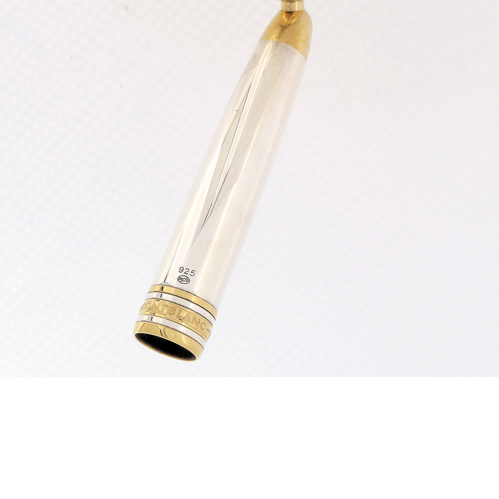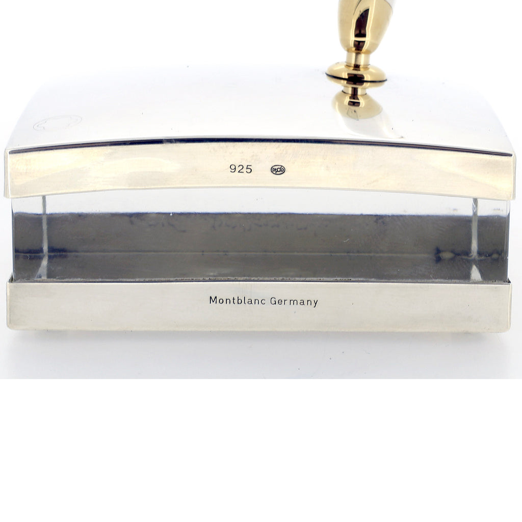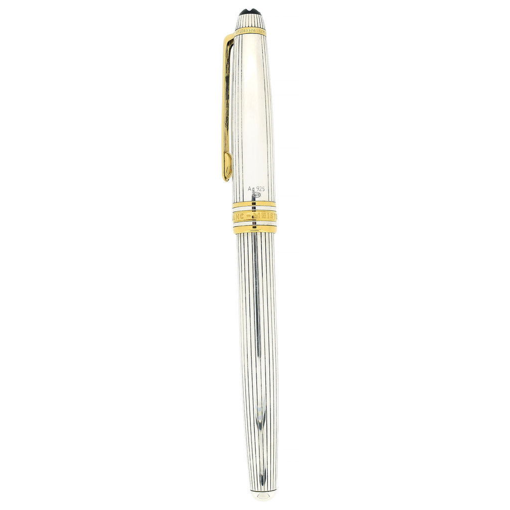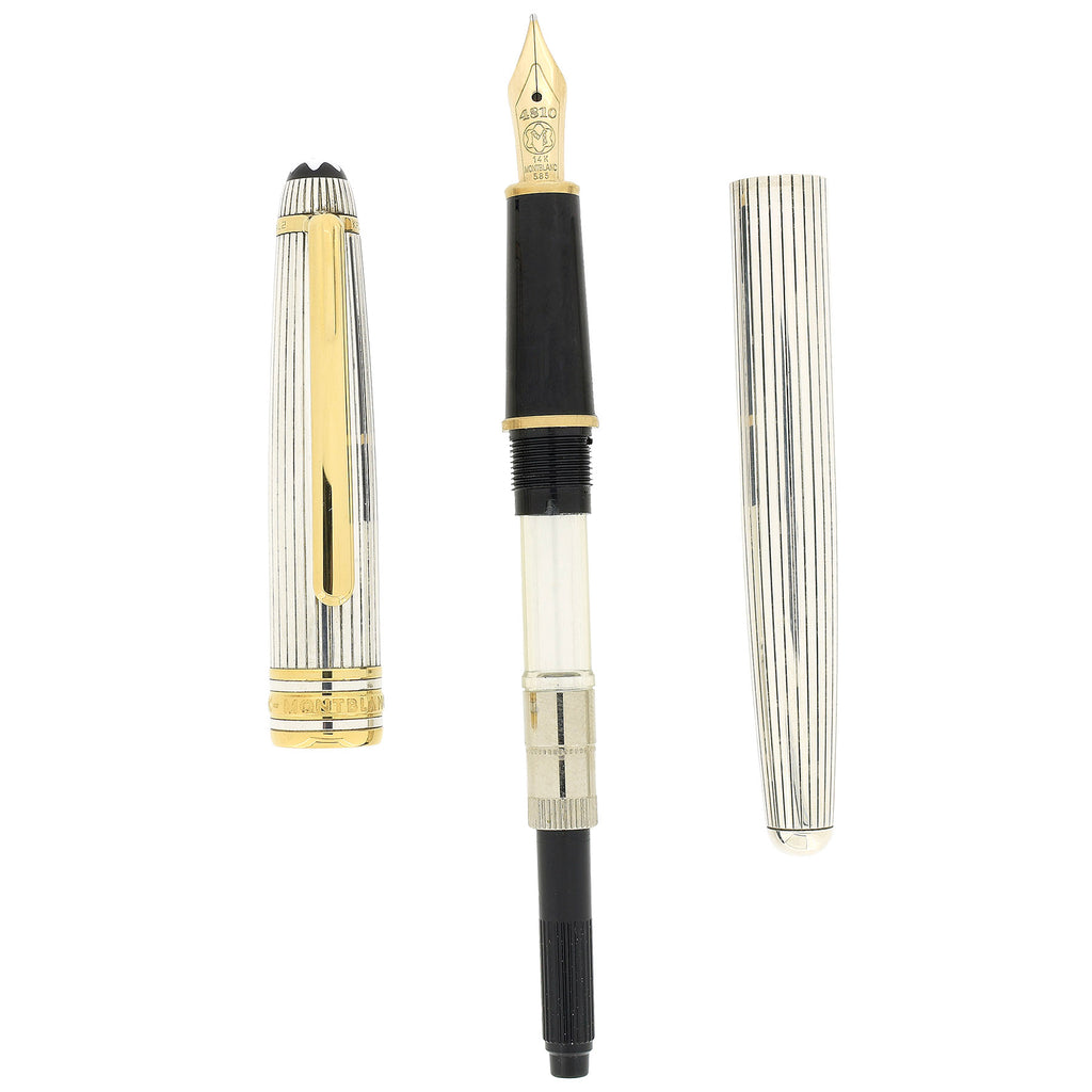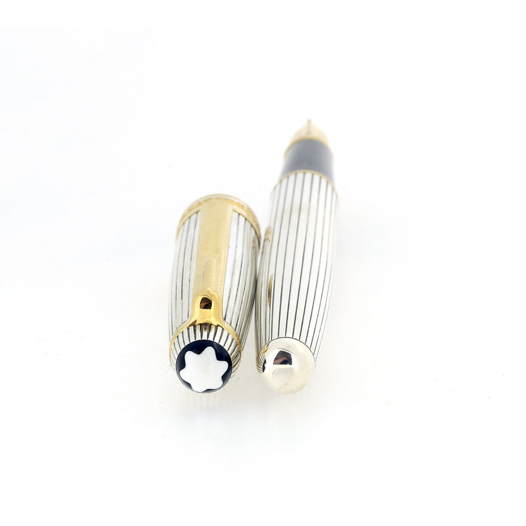 C1999 MONTBLANC MEISTERSTUCK N°144 SOLITAIRE STERLING LINED PATTERN FOUNTAIN PEN W/STERLING DESKBASE