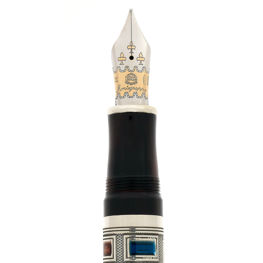 The pen is fitted with an 18K gold Montegrappa two-tone (Platinum-plated) hand-engraved nib, marked “750, MONTEGRAPPA, M”. The iridium tipping measures approximately .82 mm when measured with digital calipers, aligning with its Medium designation. As the pen has never been inked, the nib has been intentionally left untouched, preserving its originality for the next custodian.