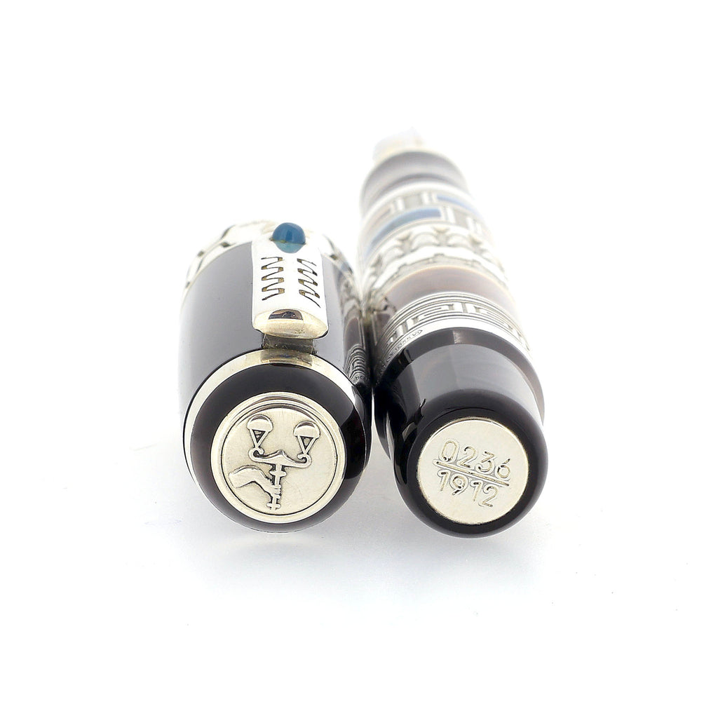 This example remains unused and flawless. The sterling silver and enamel surfaces are pristine, showing no cracks, chips, scratches, dents, wear, or repairs. The cap threads engage smoothly and secure firmly to the barrel. The sterling silver trim is crisply hallmarked “925, *1055VI, MONTEGRAPPA”, and the barrel end is engraved with the limited-edition number 0236/1912. The pen measures approximately 5 5/8 inches capped and 6 7/8 inches posted, with a substantial yet well-balanced weight of 2.36 ounces, offering a reassuring presence befitting a flagship Montegrappa limited edition.