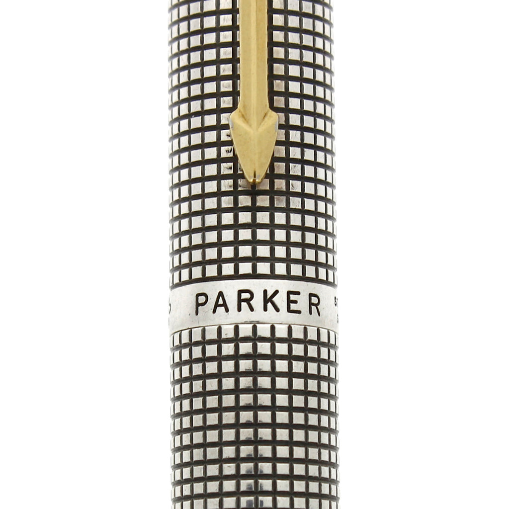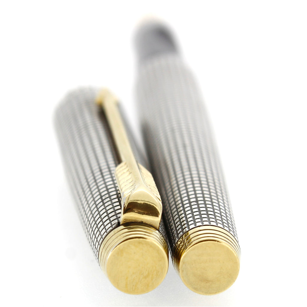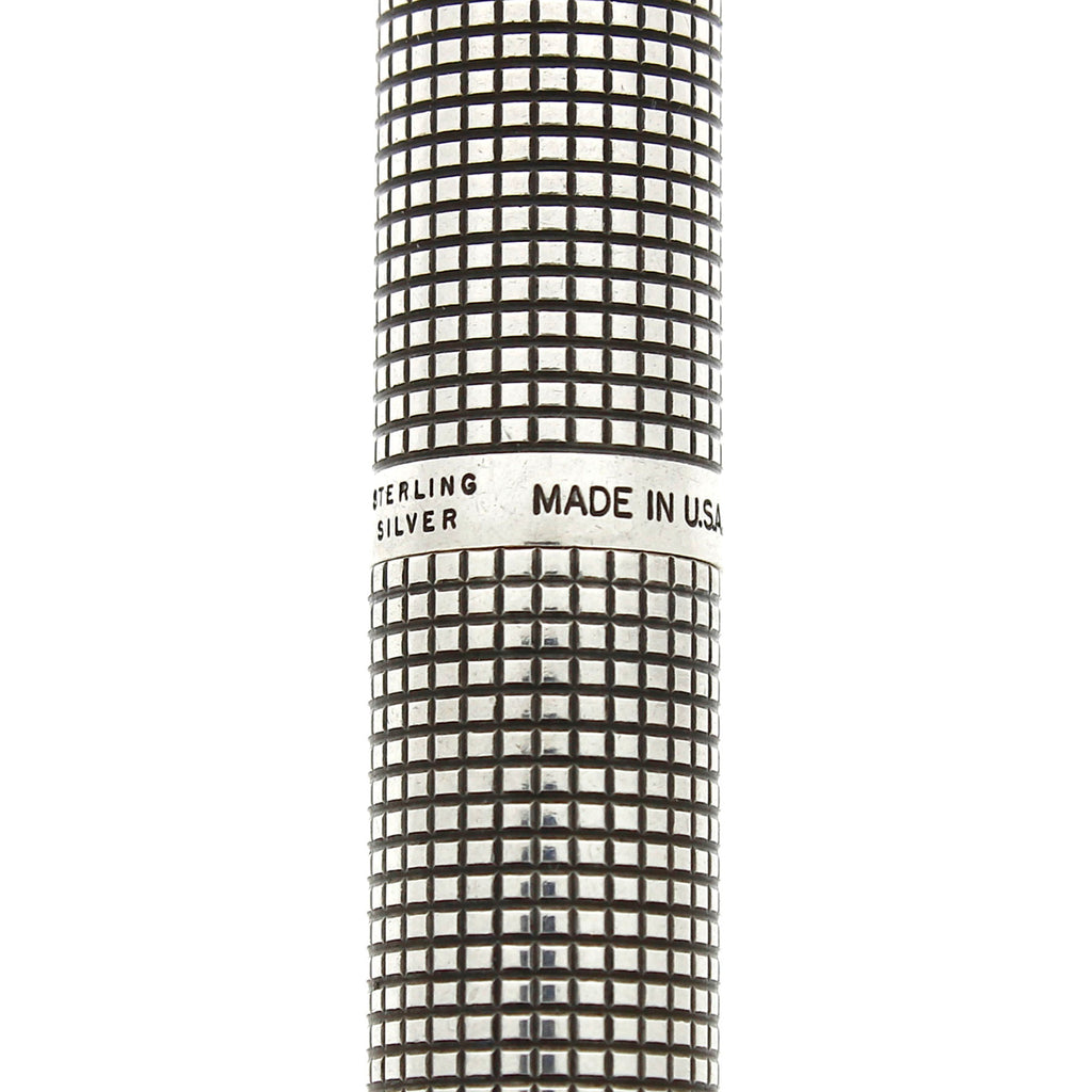 C1970 PARKER 75 STERLING SILVER CROSSHATCH GRID PATTERN #66 NIB FOUNTAIN PEN WITH BOXES/PAPERS