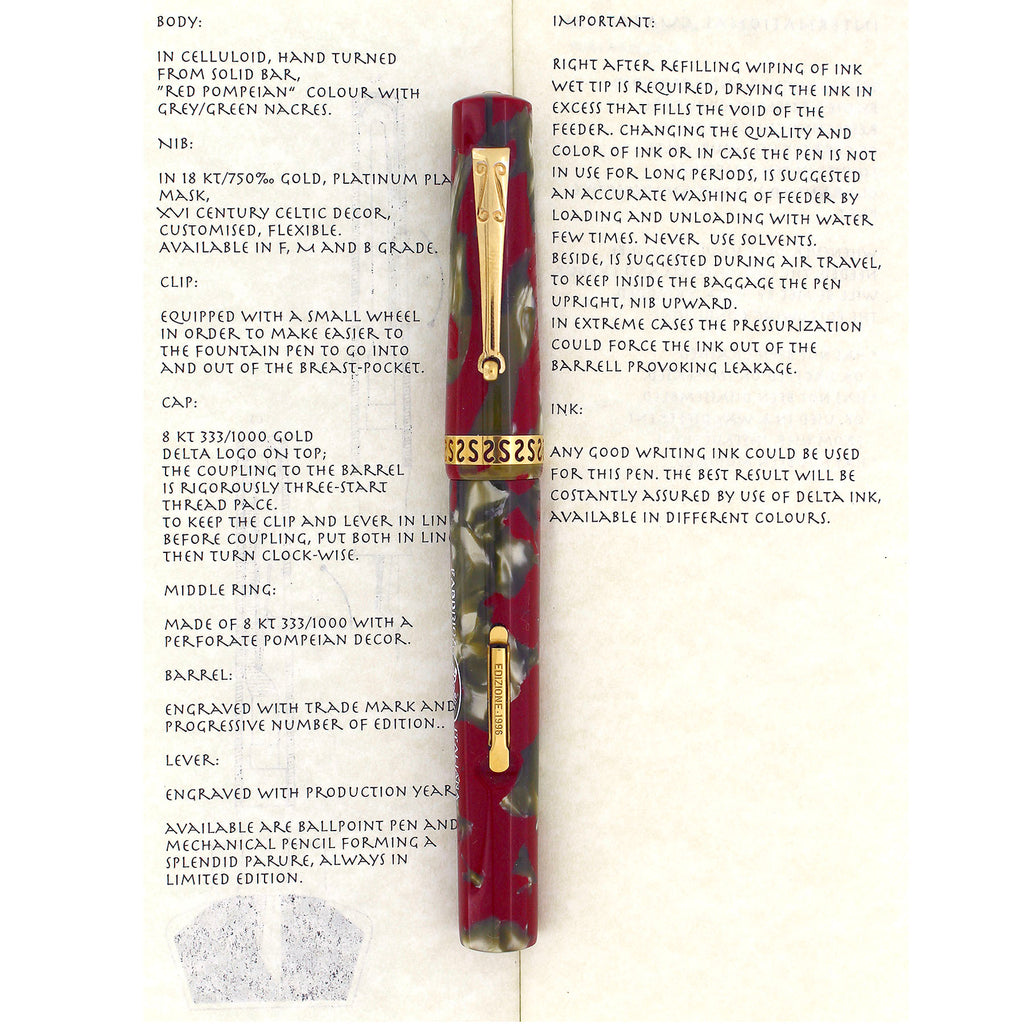 1996 DELTA POMPEI LEVER FILL LIMITED EDITION 1464/1600 CELLULOID FOUNTAIN PEN