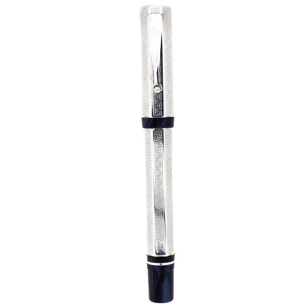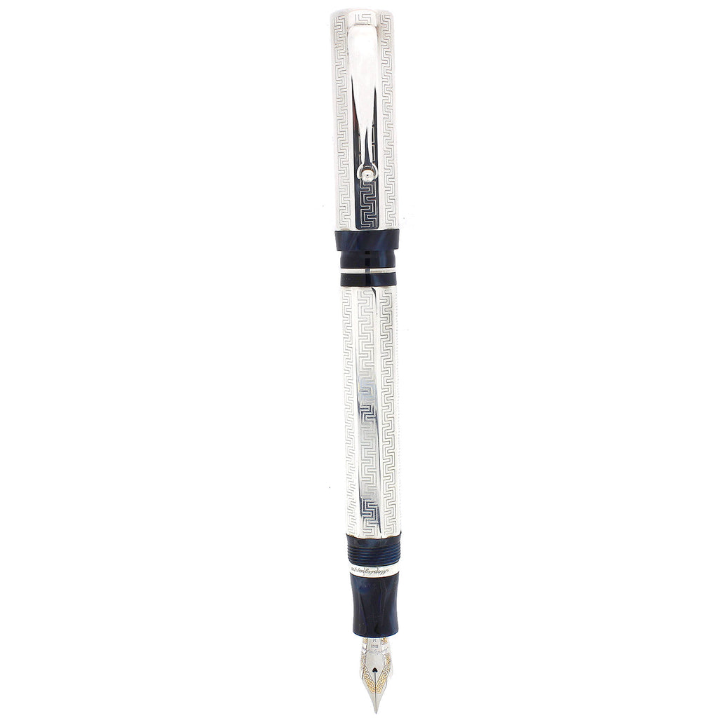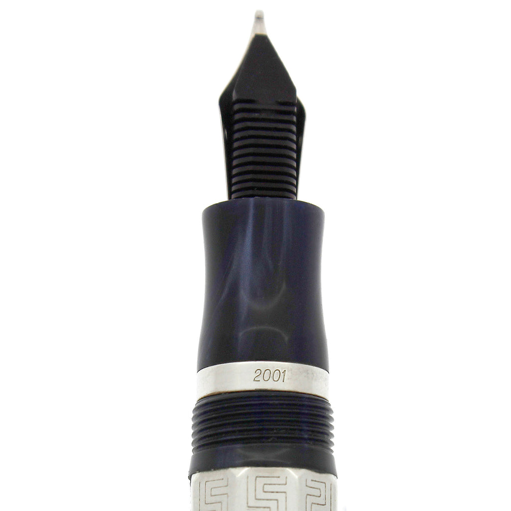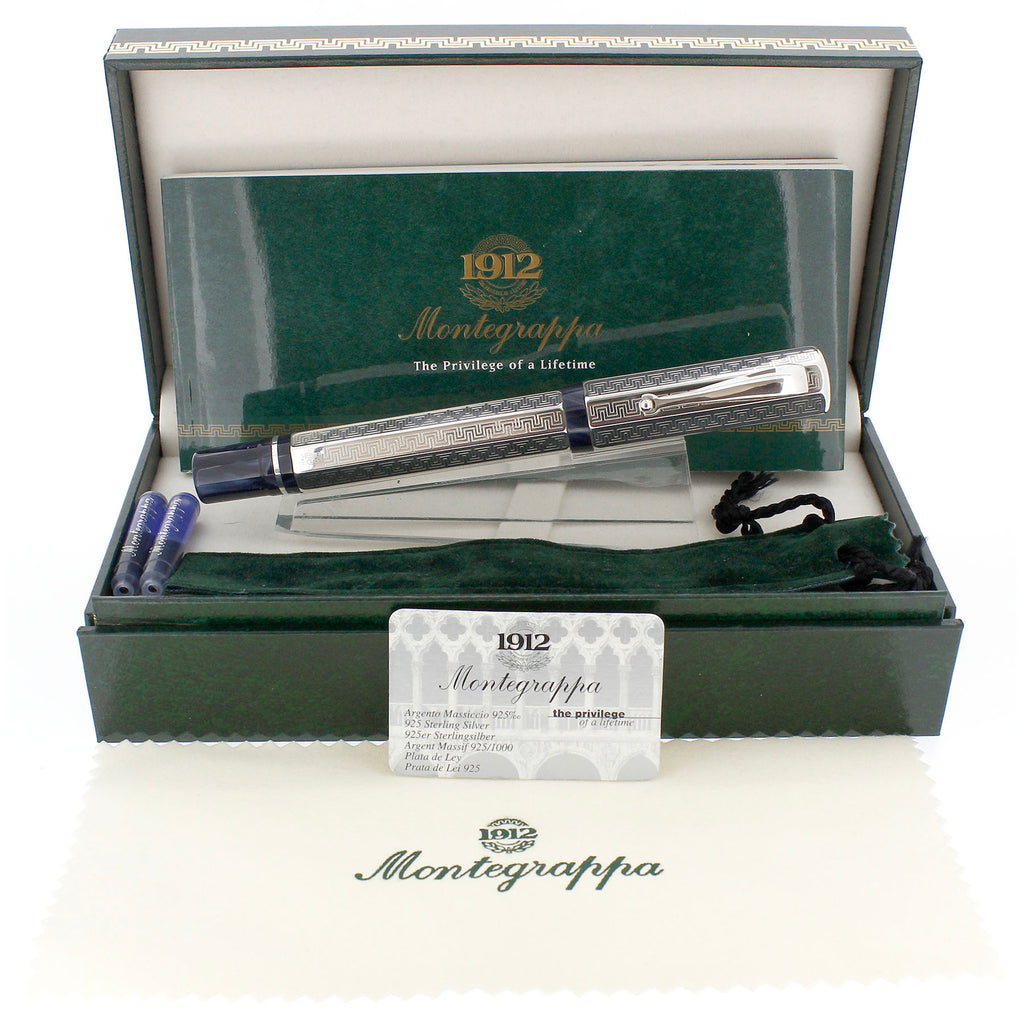 2001 MONTEGRAPPA PRIVILEGE DECO STERLING & BLUE PEARL LARGE FOUNTAIN PEN NEVER INKED