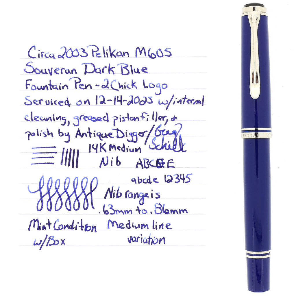 2003 PELIKAN M605 SOUVERAN DARK BLUE 14K MEDIUM NIB FOUNTAIN PEN NEAR MINT