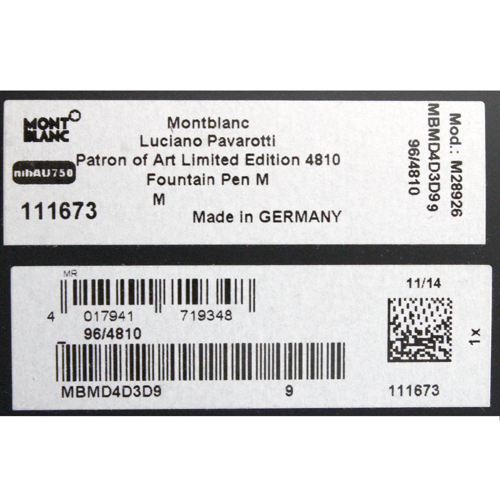 2015 MONTBLANC LUCIANO PAVAROTTI PATRON OF ART LIMITED EDITION 96/4810 FOUNTAIN PEN NEVER INKED