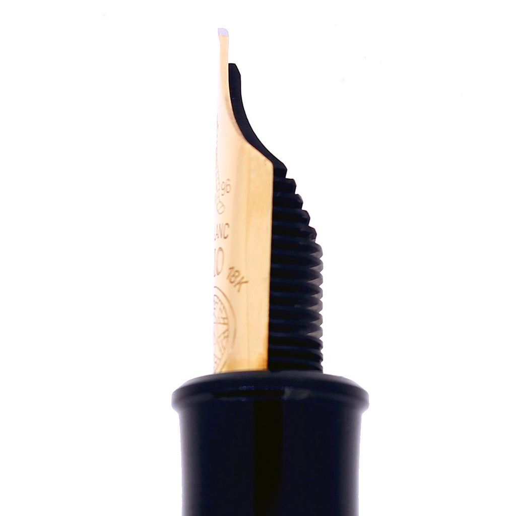 The 18K solid gold nib, engraved with symbols of Babylonian deities, is marked “4810, 18K/750, Montblanc, 1996” and measures approximately .70mm (Medium) with digital calipers. To preserve its pristine, collector-grade condition, the nib has not been dipped or filled.