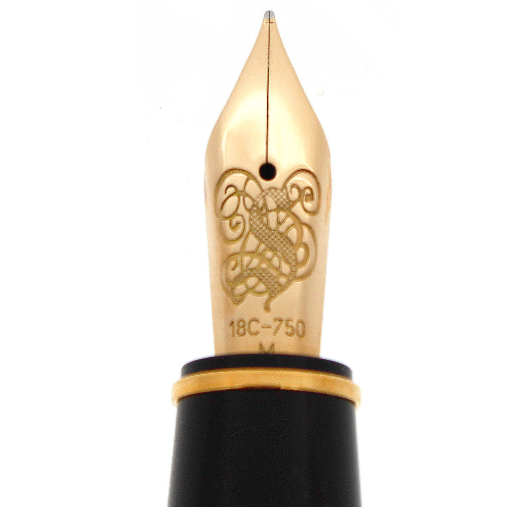 If you value stylish elegance when writing, you will appreciate the craftsmanship of the high-quality 18C-750 Gold Medium Nib, which measures .78mm when measured with digital calipers. Again, this fountain pen has never been inked.