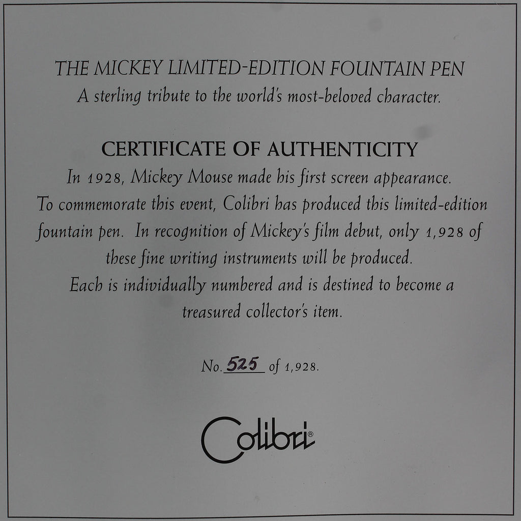 1996 COLIBRI MICKEY MOUSE LIMITED EDITION STERLING SILVER FOUNTAIN PEN NEVER INKED