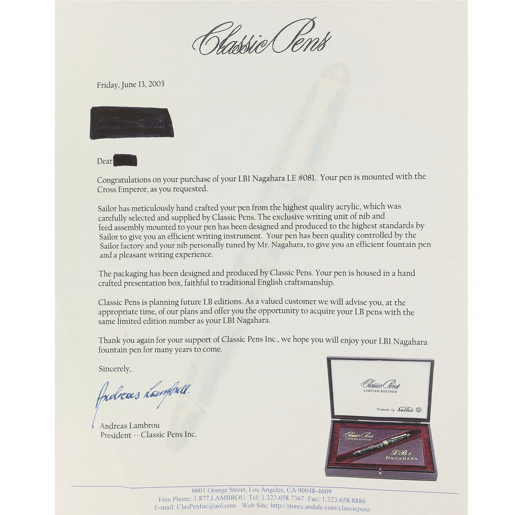 2001 SAILOR CLASSIC PENS CP1 NAGAHARA LIMITED EDITION 81/100 WITH NAGINATA CROSS POINT EMPEROR NIB FOUNTAIN PEN NEVER INKED