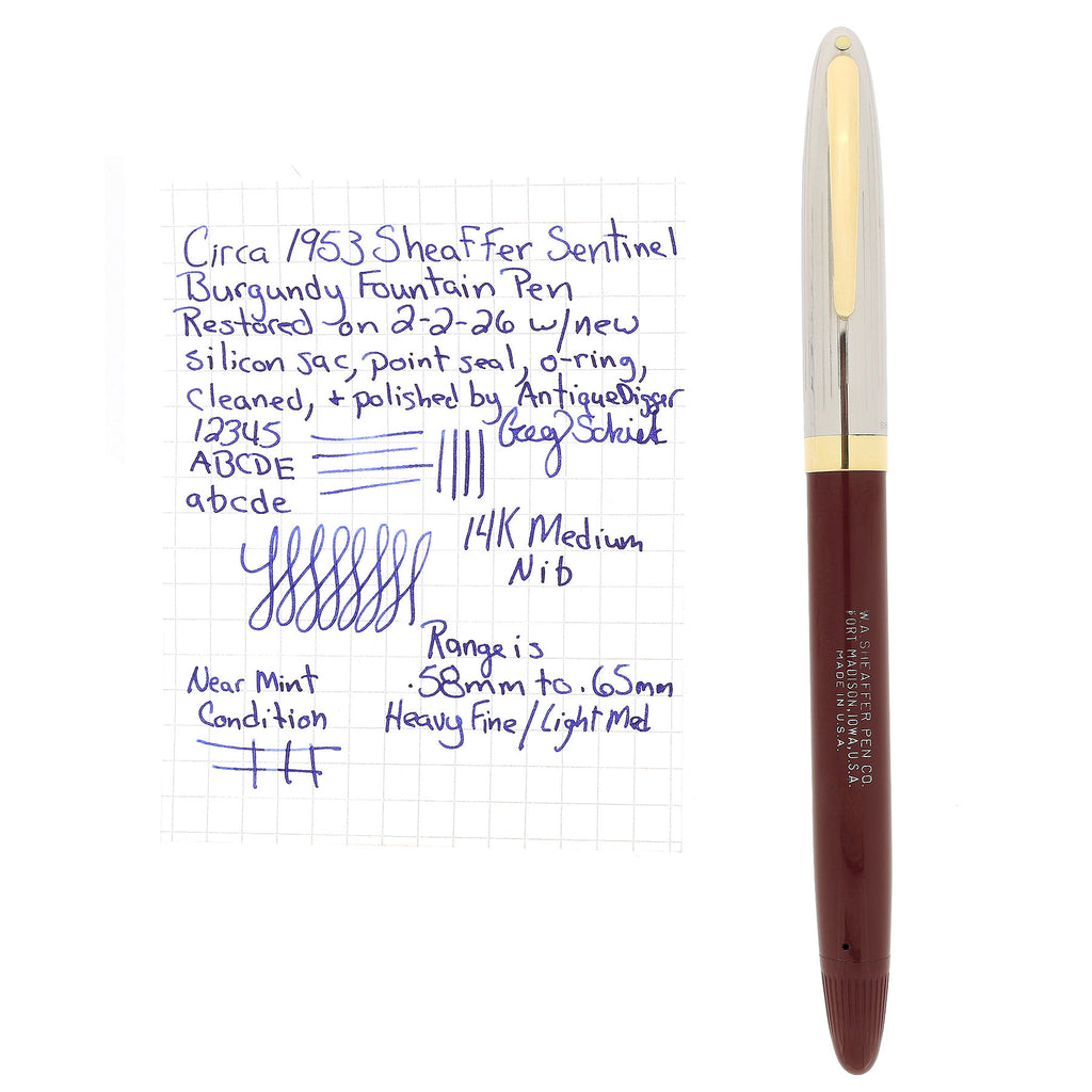 CIRCA 1953 SHEAFFER SENTINEL SNORKEL BURGUNDY 14K FINE NIB FOUNTAIN PEN RESTORED