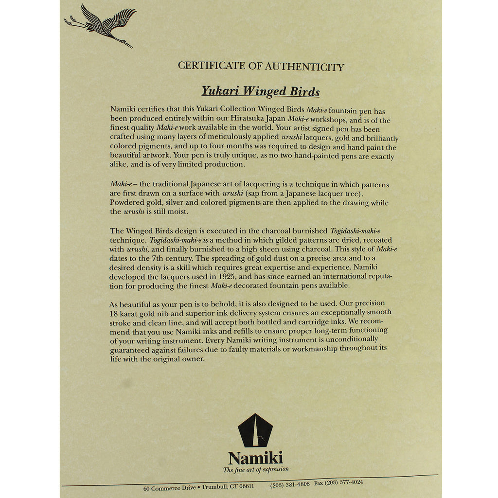 1994 NAMIKI YUKARI MAKI-E WINGED BIRDS 18K MED NIB FOUNTAIN PEN MINT