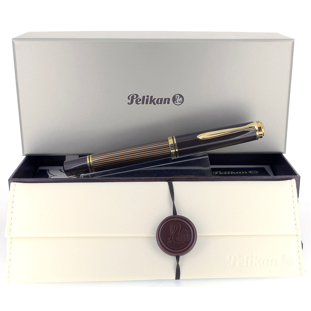 2019 PELIKAN M800 SOUVERAN BROWN-BLACK SPECIAL EDITION 18K MED NIB FOUNTAIN PEN NEW IN BOX